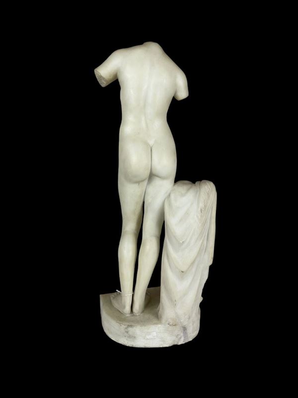 Scultura in volume di Venere, ripresa da Venere di Milo, in marmo bianco statuario. Produzione italiana. Prima metà XX secolo.