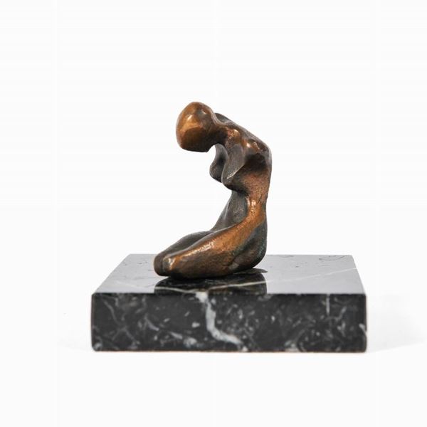 Sculpture in volume in bronze with brown patina, on a black marble base. Cassinari signed along the thigh.