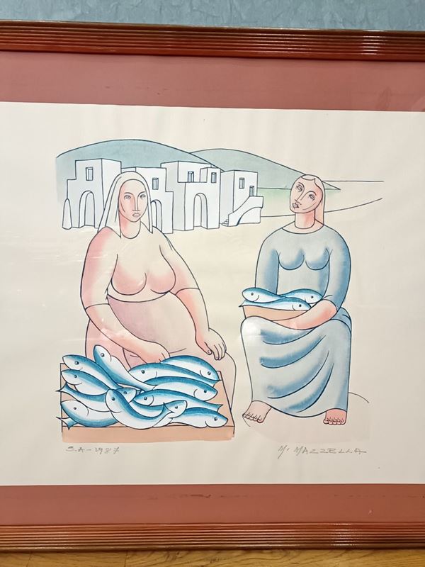 Firmate in basso a destra, in cornice, dimensione litografia: 48 x 68 cm