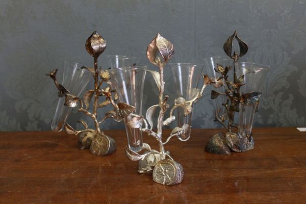 In metallo argentato, con due bicchieri in vetro ciascuna.