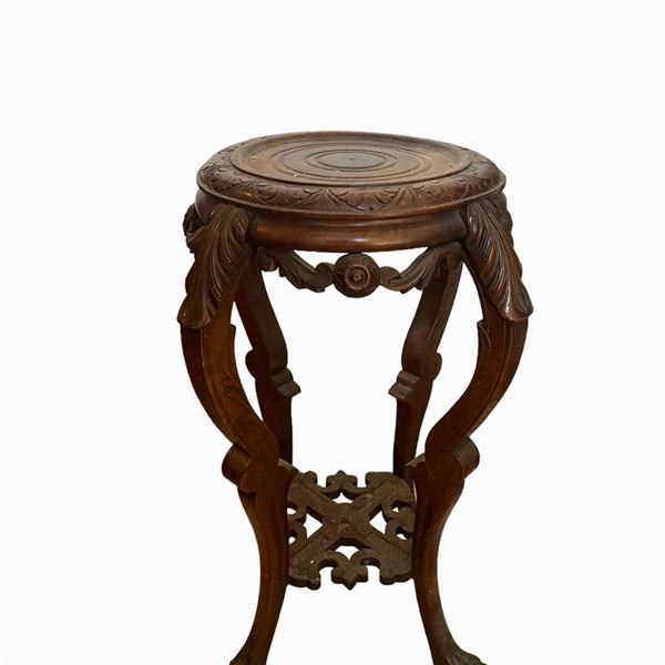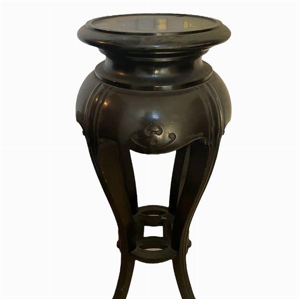 La prima misura: 103 x 30 x 30 cm. La seconda, in legno intagliato ebanizzato con ripiano in marmo, misura: 46 x 30 x 30 cm.