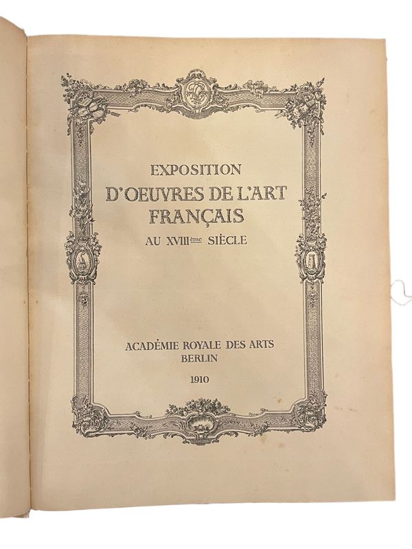 Sottotitolo: "Catalogue de l'exposition d'oeuvres de l'art français au XVIIIème siècle, 1910, avec une introduction du professeur Dr. Seidel, Directeur des Collections Artistiques des Chateaux Royaux et du Musee Hohenzollern". Pubblicato dall' l'Académie royale des Arts - Berlin 1910.