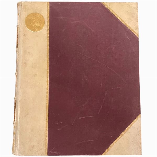 Rilegatura rigida in mezza tela, bordeaux e crema. Dorso a nervi con 6 caselle. Condizioni conservative buone, fioriture e foxing.