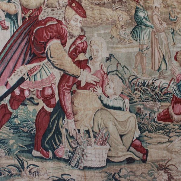 Completo di asta in ottone lucido. Tratto da un arazzo con cartone preparatorio di Cornelis Lucas del XVII secolo. Edition d'Art Rambovillet.