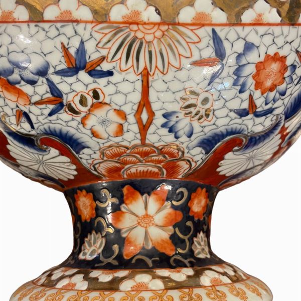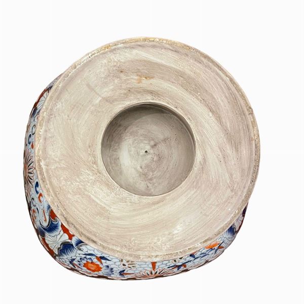 Di forma quadrangolare, in porcellana bianca con decorazione floreale Imari. Giappone
