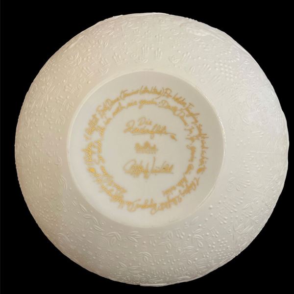 Insalatiera in porcellana magica con figure antropomorfe, animali e fogliame stilizzati in rilievo. Manifattura di Rosenthal