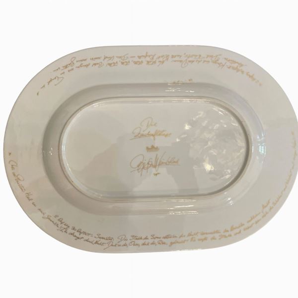 Piatta da portata in porcellana bianca con tesa a figure e vegetali in rilievo. Manifattura di Rosenthal