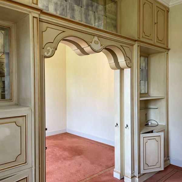 in legno e specchi, con vani e sportelli a forme e dimensioni diverse. Il lotto รจ visionabile su appuntamento presso l'Hotel Aldrovandi.