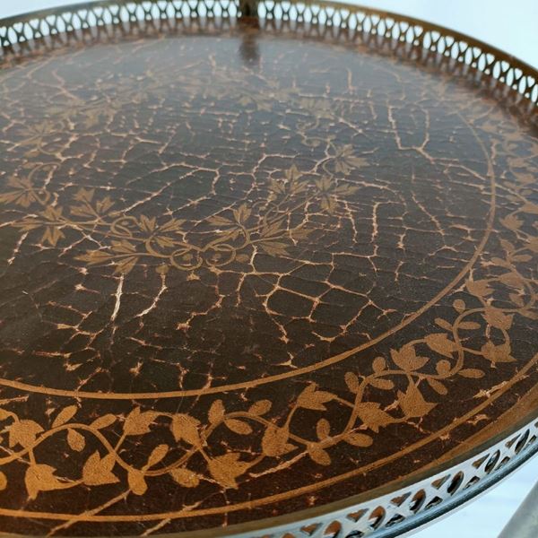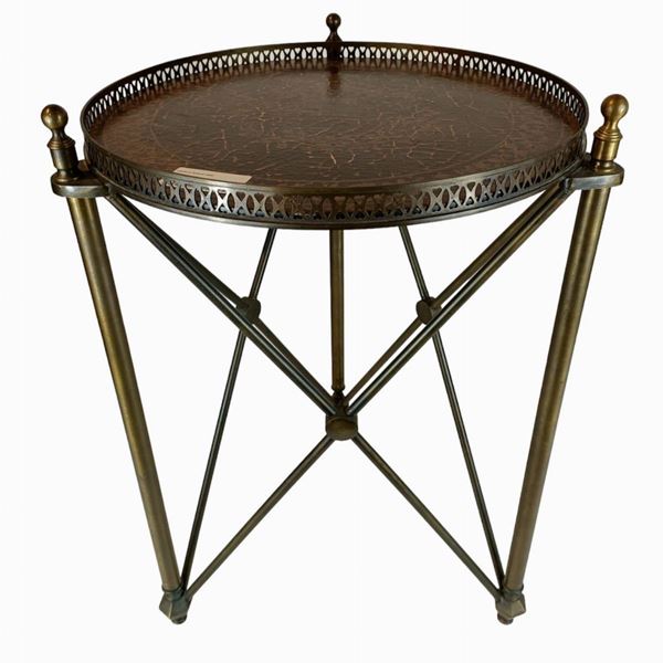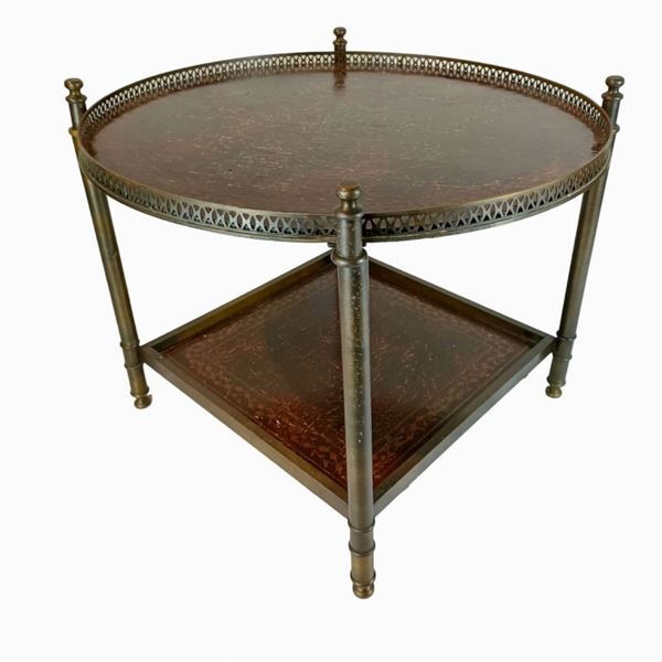 Uno a tre piedi e uno a quattro piedi, in bronzo brunito e piano rivestito in pelle con piccola ringhiera in bronzo.