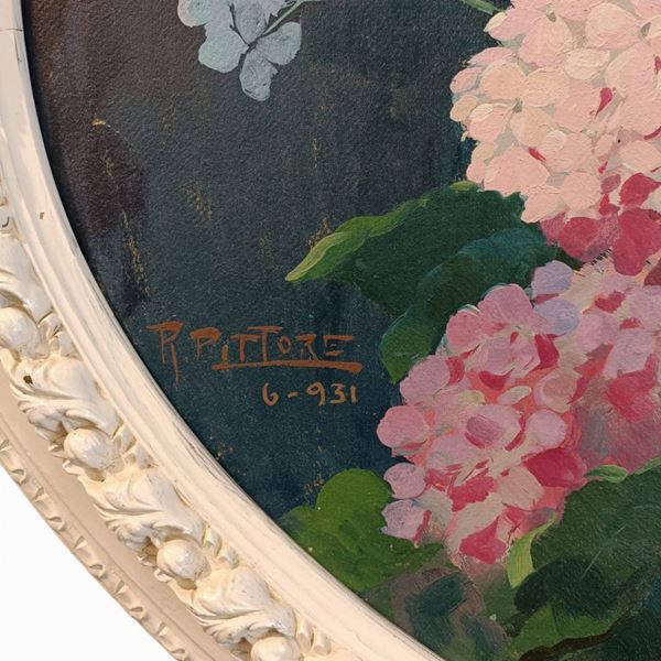 Di formato ovale. Firmato e datato sulla sinistra: "R. Pittore, 6 - 1931". In cornice laccata bianca.