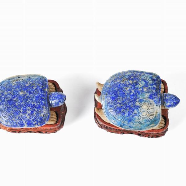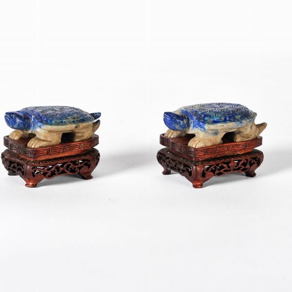 Sculpture in volume in lapis lazuli root, on a worked wood base.