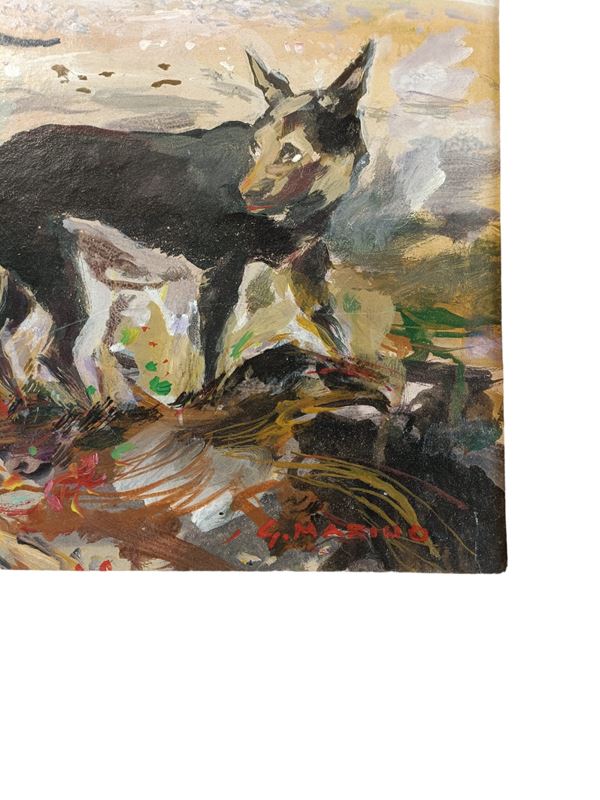 Applicato su tavola dall'artista. Firmato in basso a destra. Firmato e situato "Scilla" al retro.