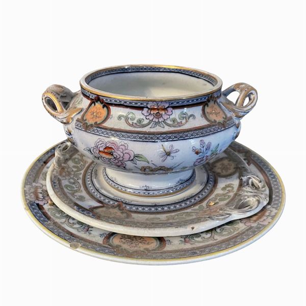 Di cui due zuppiere e una salsiera (senza coperchio). Manifattura inglese.