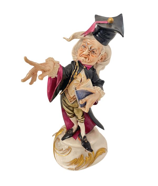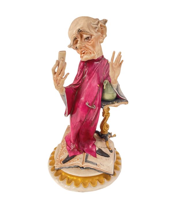 in porcellana policroma Capodimonte, con basamento. Composto dalle caricature di: dottore, avvocato "Il dibattimento", e chimico.