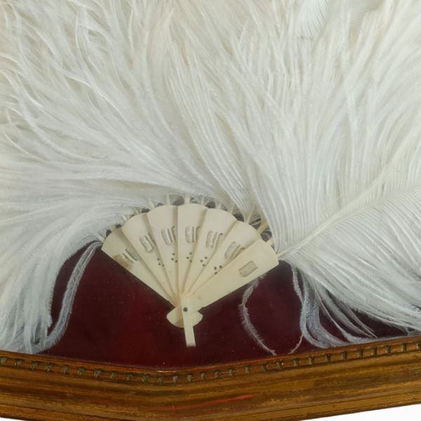 In seta a piume di struzzo, montate su sette stecchi in osso, 70 x 42 x 6 cm