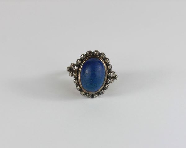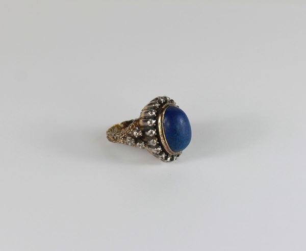 Anello in oro, diamanti e lapislazzulo, metà XX secolo