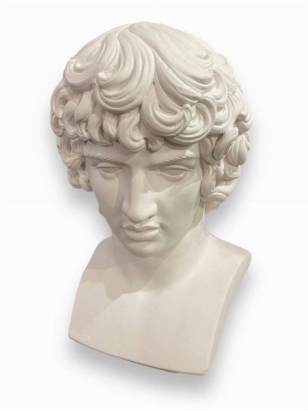 scultura raffigurante testa di Antinoo di Delfi in gesso.