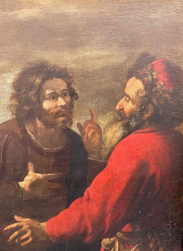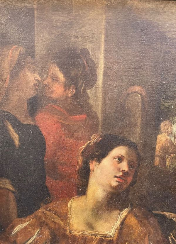 Carlone lo risolve in questo dipinto databile in un momento relativamente giovanile, verso la metà del secolo, con una scena animata e narrata con brio.
