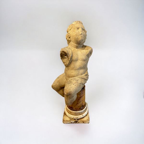 adagiati su basamenti in giallo antico, mancanti di braccia ed ali. Restauri e mancanze. Basamenti di epoca posteriore, putti del XVI secolo.