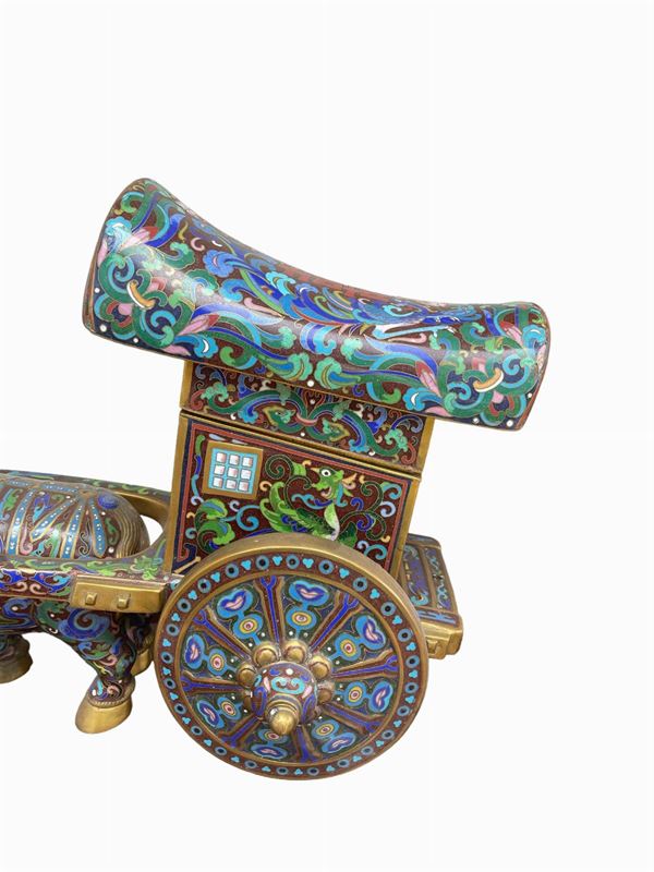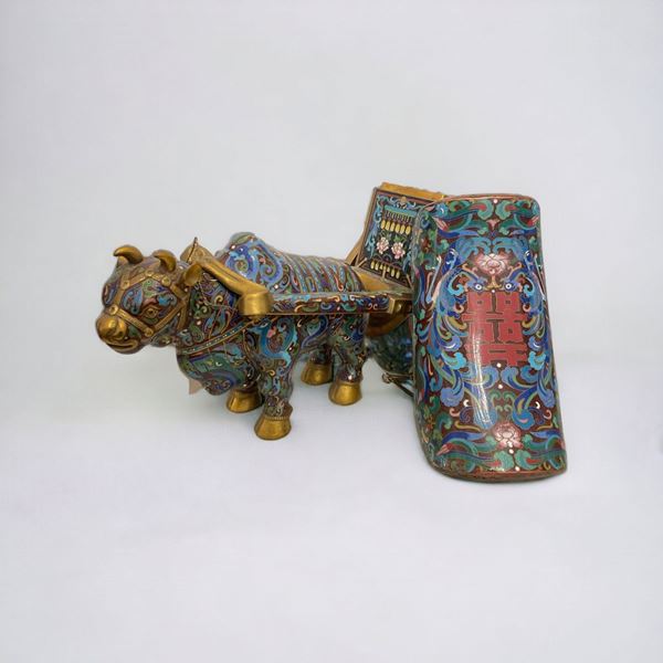 Gruppo composto da carro trainato da un toro, metà del XX secolo