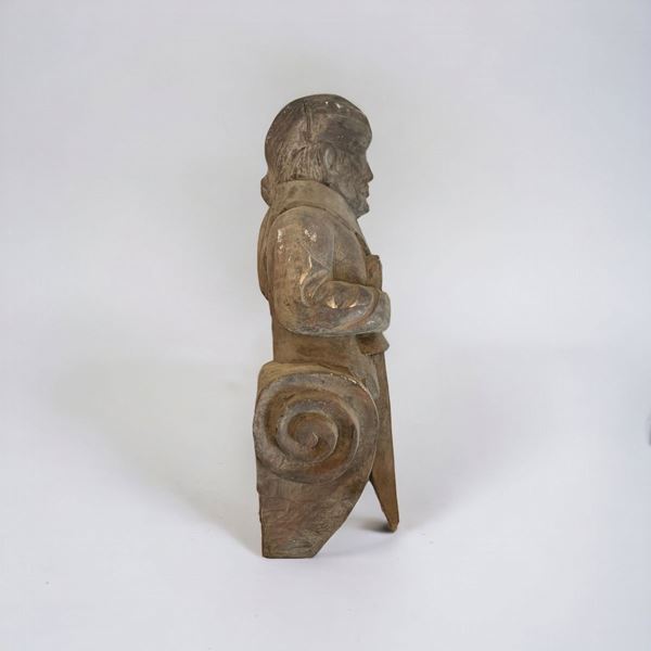 Scultura in legno di quercia intagliato. Piccoli difetti.