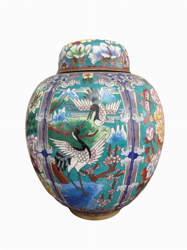 In bronzo con decorazioni cloisonné.