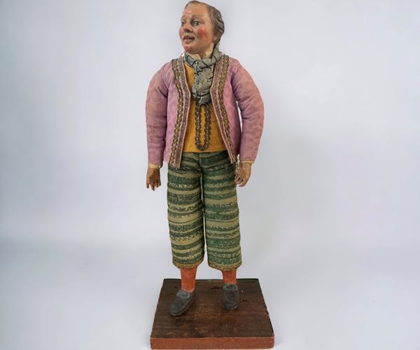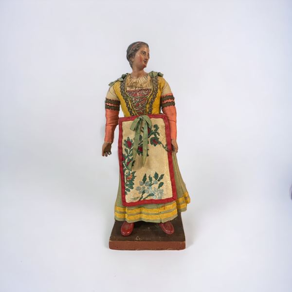 Raffiguranti due popolani. In terracotta e abiti in tessuto d'epoca. Base: cm 8 x 12,50.