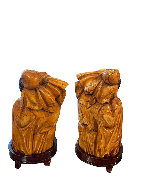 Sculture in volume, in materiale composito. Con base in legno. Arte dell'Estremo Oriente