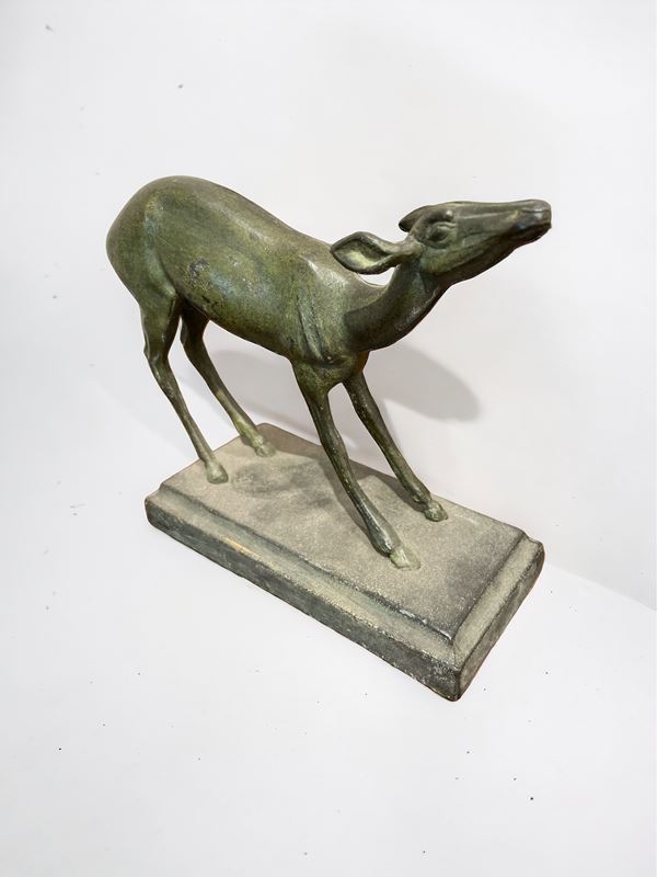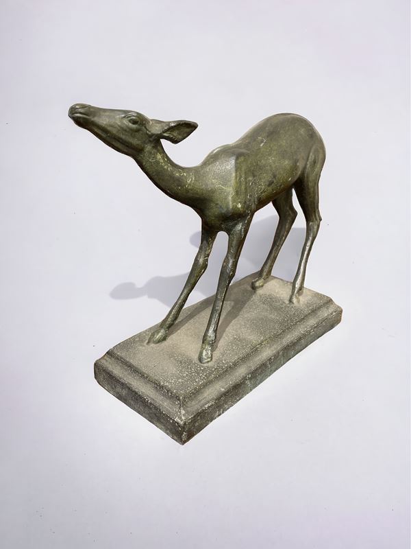 Raffiguranti Cerbiatti. In bronzo a patina verde.