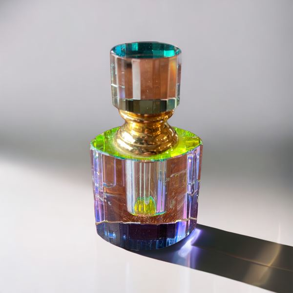 composto da: uno svuotatasche (22 x 14 x 13 cm), un vasetto (16 x 5 cm alla base), un pesce (10 cm) e boccetta portaprofumi in vetro opalescente (8 x 5 cm)