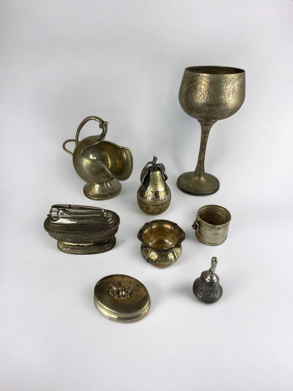 Composto da 4 oggetti in argento, peso gr. 190; e 7 oggetti in metallo.