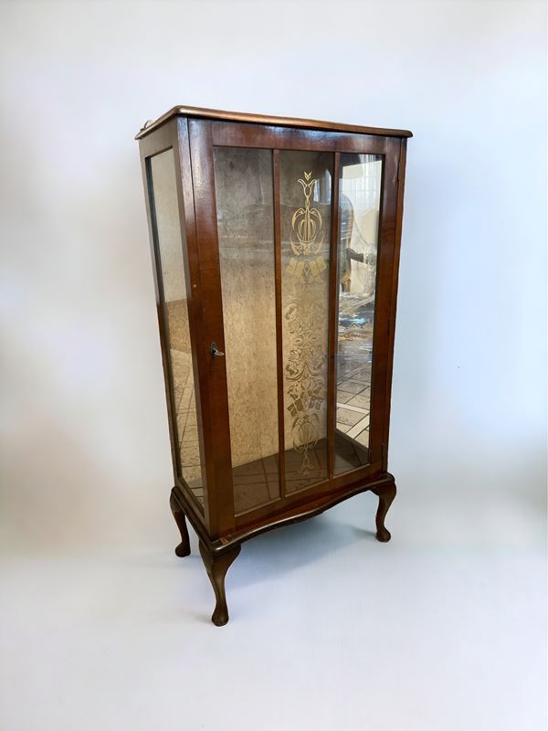 in legno di noce, ad un'anta. Vetro sabbiato.