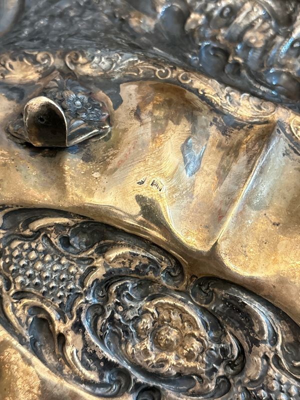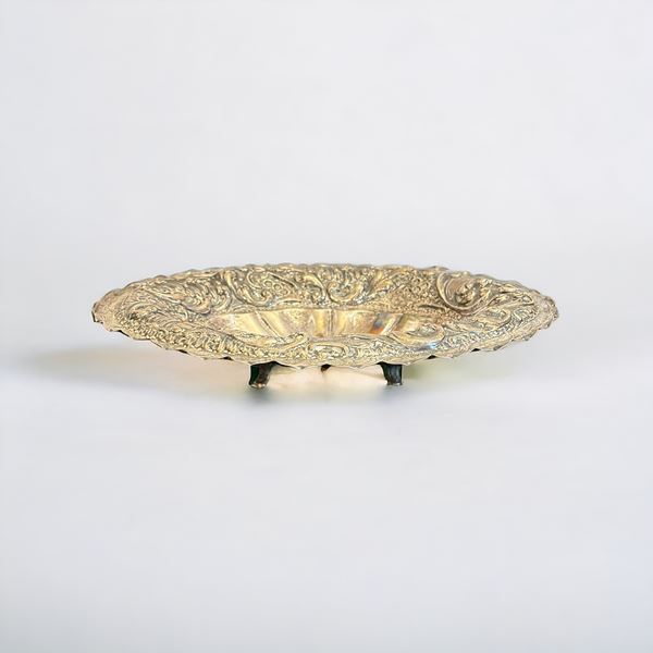 di forma ovale in argento decorato a sbalzo, peso 828 gr