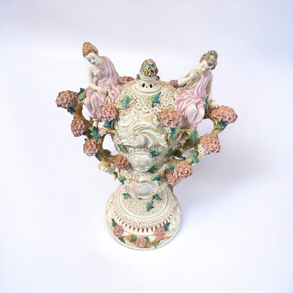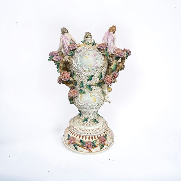 Grande vaso biansato in porcellana di Capodimonte, XX sec.