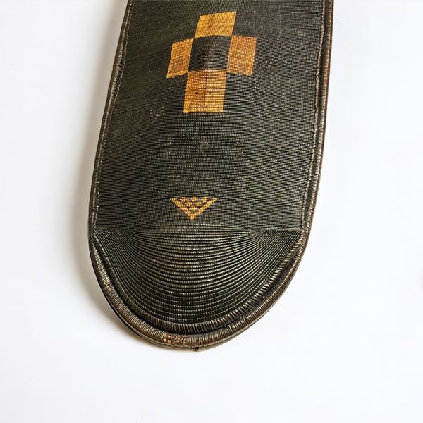 Popolo Zande, Repubblica Democratica del Congo. Gli scudi Gbilija sono i piรน grandi e i meno decorati dei tre tipi di scudi Zande. Hanno disegni geometrici e colori contrastanti.