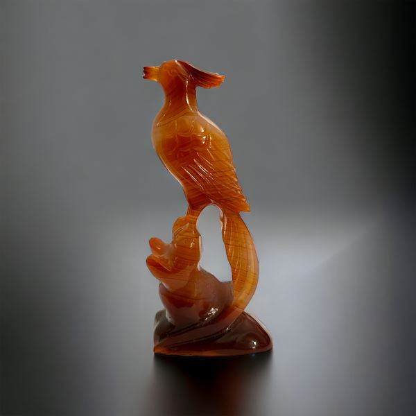 Scultura di volatile scolpita in corniola, Giappone, XX secolo