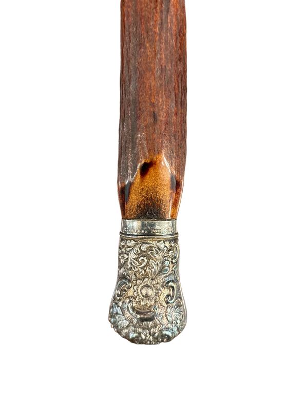In corno di cervo e Scheffield, con scatola originale. Inghilterra. Coltello: 40 cm.