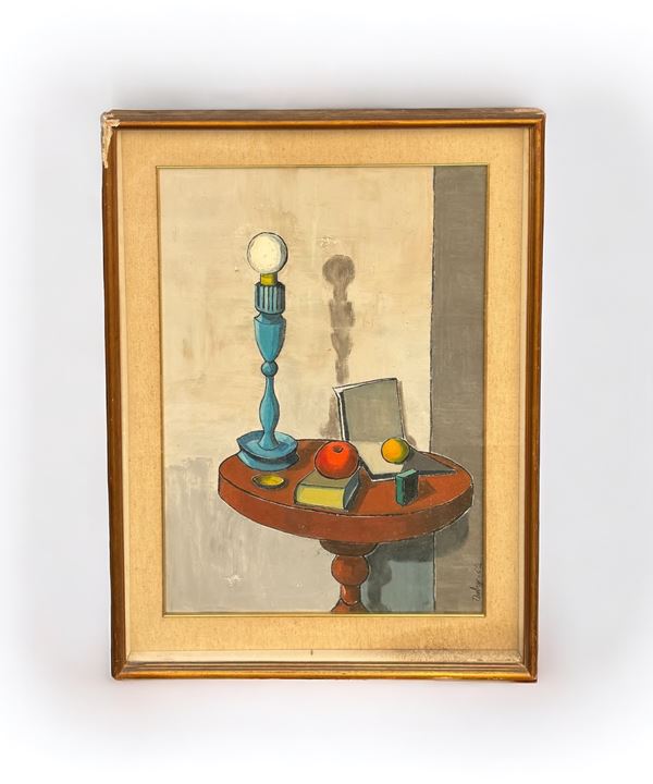 Presente piccolo taglio. Firmato e datato in basso a destra e al retro. In cornice.