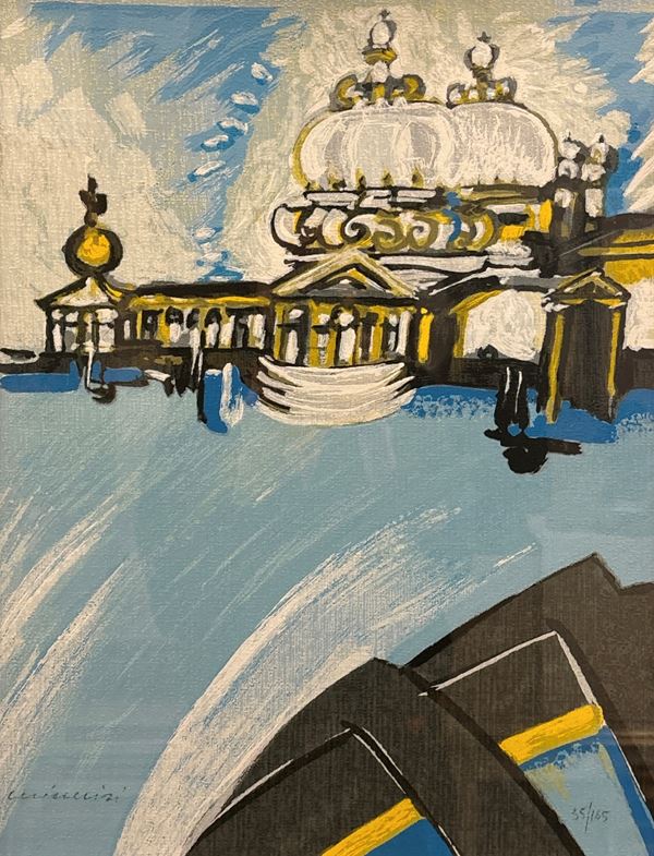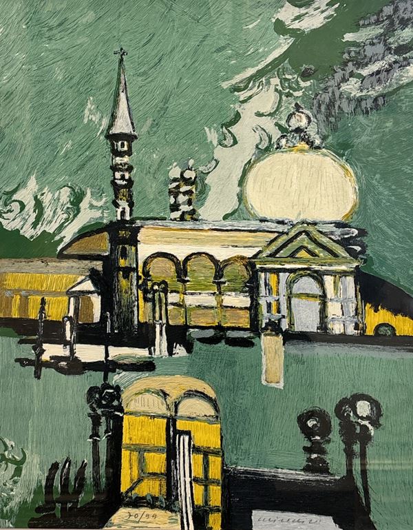 Venezia color verde: es. n. 70/99. Firmato e numerato a matita. Dimensioni: 49 x 39 cm. In cornice. Venezia azzurra: es. n. 55/165. Firmato e numerato e matita. Dimensioni: 50 x 37 cm. In cornice.