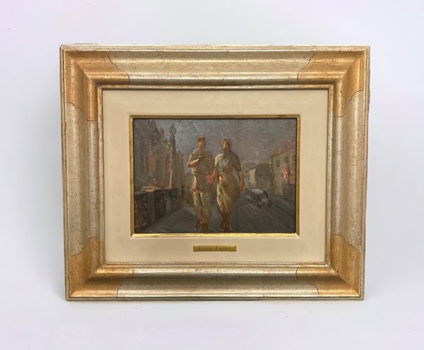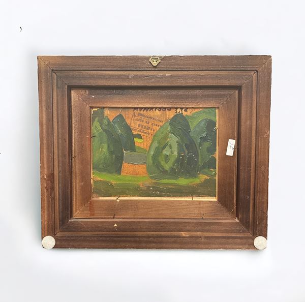 Al retro firma e timbro sovietico di esportazione. La parte posteriore risulta anch'essa dipinta. In cornice.