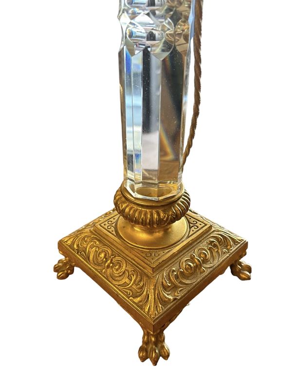 in bronzo dorato e plexiglass. Altezza senza paralume 42 cm.