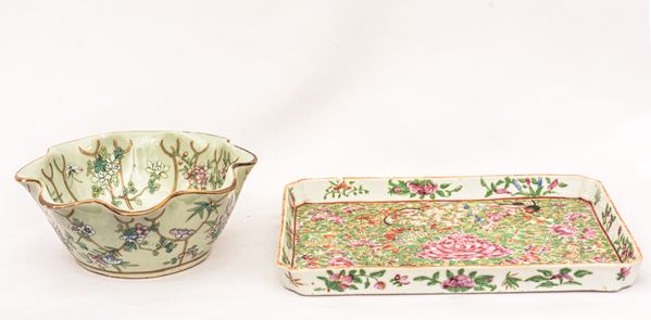 Lotto composto da un vassoio e una ciotola, Cina, XX secolo