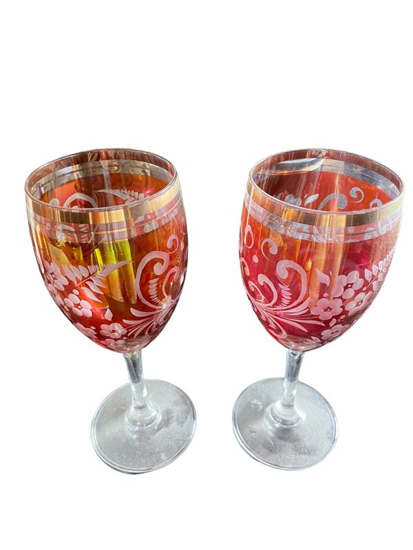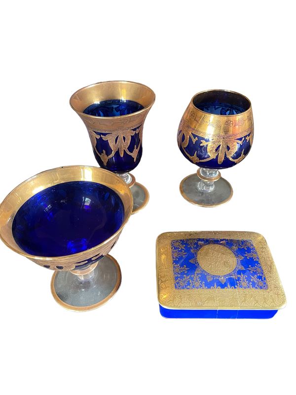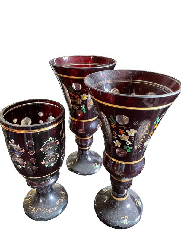 Tra cui 5 bicchieri con decorazioni a rilievo in metallo.