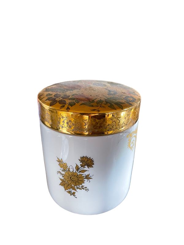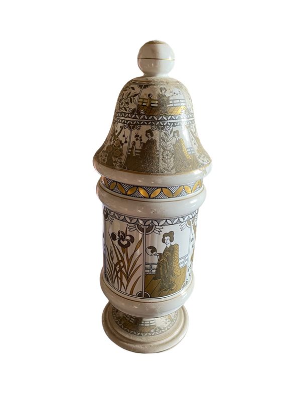Di cui due contenitori apribili. Il maggiore misura: 30 x 12 cm (difettato). Vaso: 33 x 12 cm.