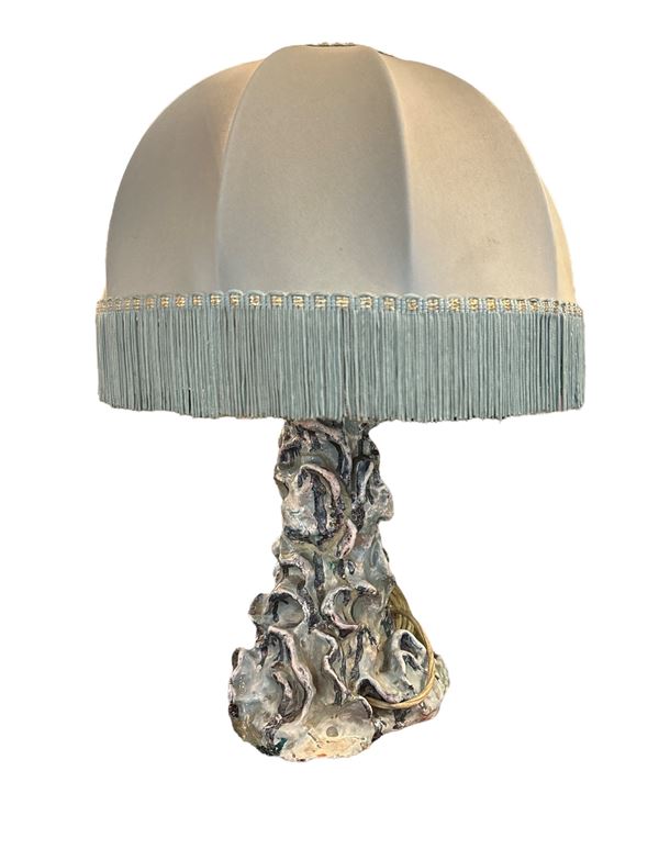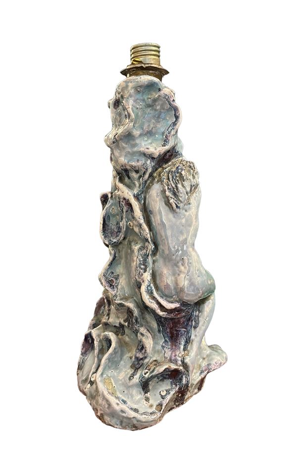 In terracotta smaltata. Adattata a lampada ed elettrificata. Da revisionare.