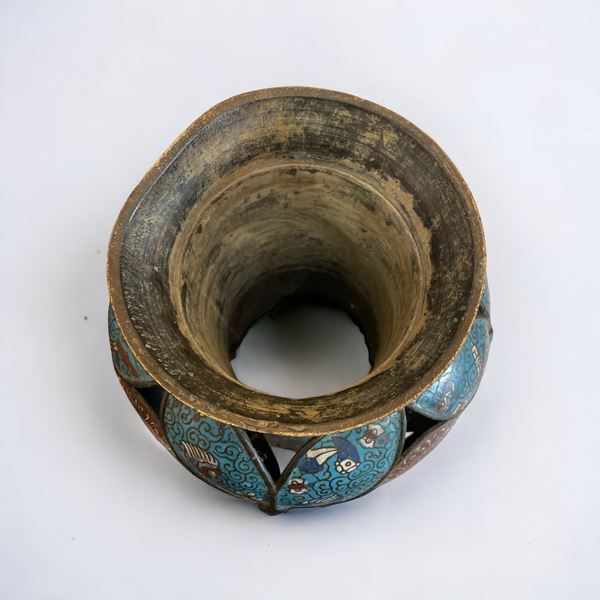 In bronzo e cloisonné smaltato. Piccoli difetti, senza base.