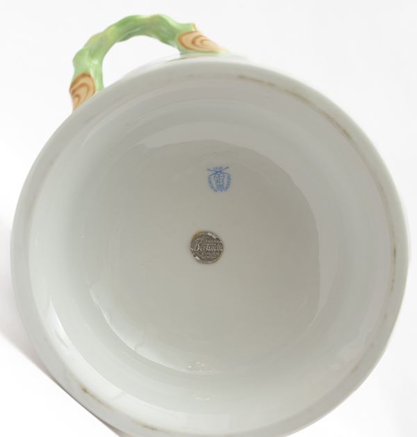 In porcellana decorata a motivi floreali e animali. Marchio della manifattura al retro. Conservazione: Ottima.