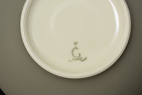 composto da: 12 tazzine con piattini, caffettiera, zuccheriera, lattiera e vassoio da biscotti. Marchio di produzione alla base. Conservazione: Ottima.