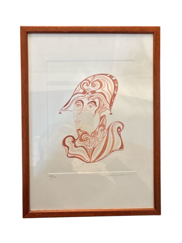 Merlo: "Generale", es. n. 18/30. Firmato e numerato a matita. Dimensioni: 22 x 18 cm. In cornice.