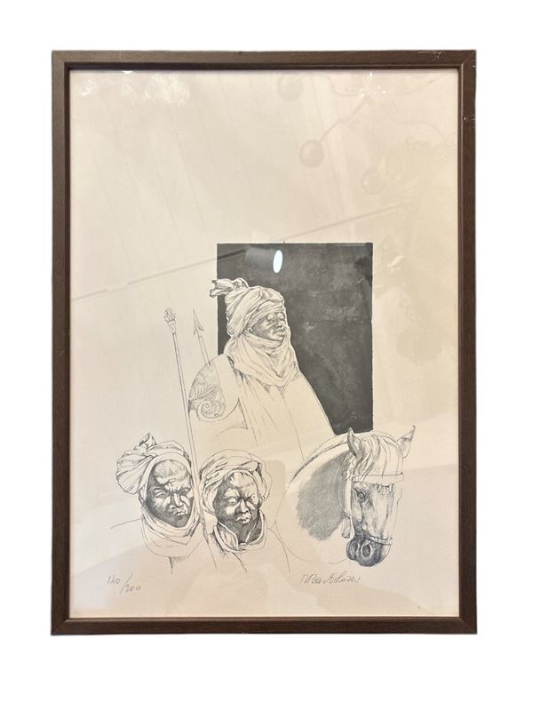 Bartolozzi: "Tre mori", es. n. 140/200. Firmato e numerato a matita. Dimensioni: 43 x 30 cm. In cornice.